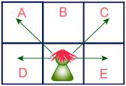 - 학생이 \((i, j)\)에 앉아있다면, \( D ( i, j - 1) \), \( E ( i , j + 1 ) \), \( A ( i - 1, j - 1) \), \( C ( i - 1, j + 1) \) 4 자리는 컨닝이 가능하기 때문에 학생이 앉으면 안 된다.